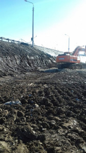 Уссурийск. Чусовской мост. Строительство дорожной развязки в Пальниках. Подготовка площадки для устройства шпунтовой подпорной стенки.